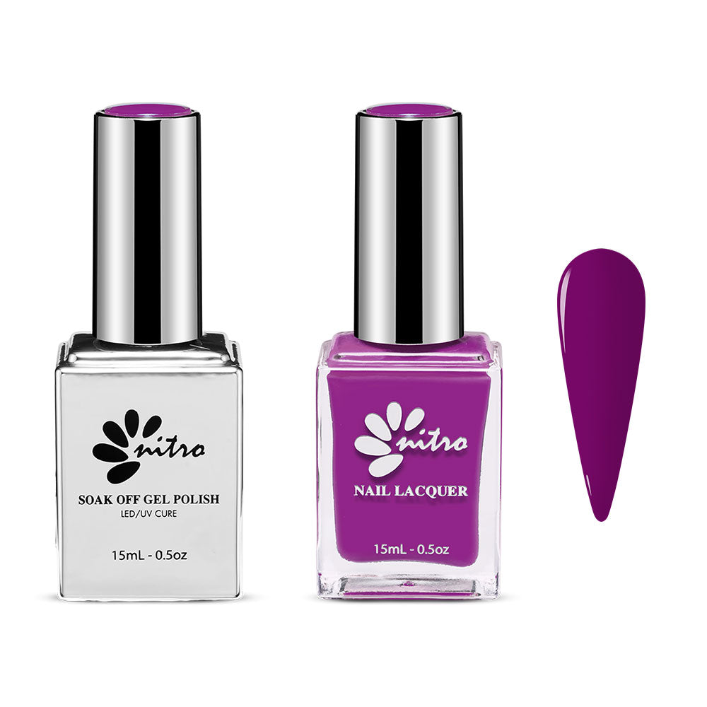 Nitro Gel Polish & Nail Lacquer Duo is a professional quality, highly pigmented, and long-lasting gel polish, paired with matching nail lacquer to easily match the gel manicure set with a pedicure or touch-ups.